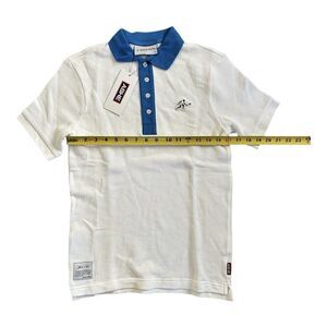 The product is a brand new with tags Arthur Ashe Rowing Blazers 1975 Blue White Tennis Polo in size XS. This polo shirt features a collared neckline, short sleeves, and a knit fabric wash. The shirt is designed with a multicolor striped pattern, making it perfect for tennis enthusiasts or fans of Arthur Ashe. Made by the renowned brand Arthur Ashe, this polo is sure to make a stylish statement for those looking for a high-quality and unique piece of clothing.