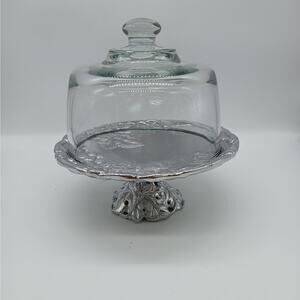 Arthur Court 2000 Grape 8" Pedestal Dessert/cheese Plate & Glass Dome Lid Silver