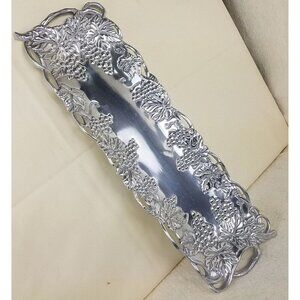 Arthur Court Metal Oblong Serving Tray 19x6, Grapes Sand Cast Aluminum 1995