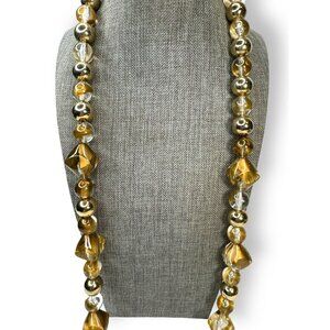 Arthur David Gold Marbled Lucite Beaded Necklace 30” Spring Ring Glow