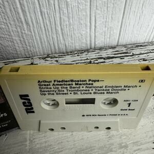Arthur Fiedler and the Boston Pops ~ Great American Marches - Cassette Tape. Tape has yellowing and case has signs of aging such as small scuffs and scratches. Please review all pictures for best idea of condition. Next day shipping!