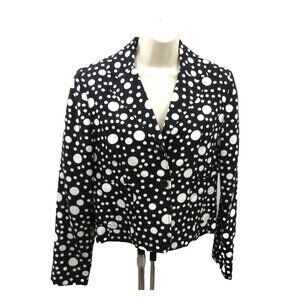 Arthur Levine Blazer Women 10P Petite Linen Blend Black White Polka Dot Lined