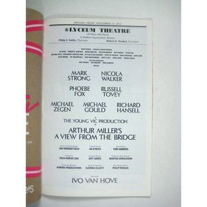 Arthur Miller's View From Bridge Playbill Opening Night November 2015 Gould