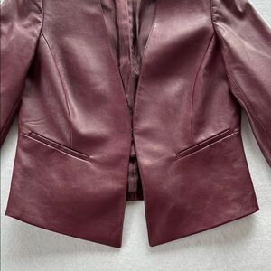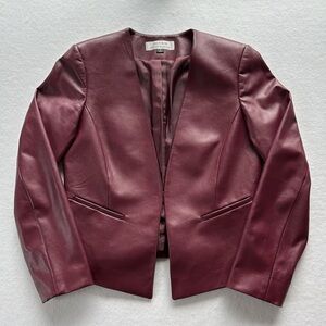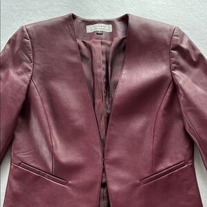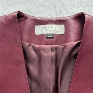 Arthur S Levine Tahari Burgundy Faux Leather Fitted Blazer Tailored Lined Sz 6