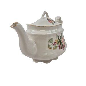 Elegant Arthur Wood & Son teapot featuring a beautiful floral design with gold trim. Made in Staffordshire, England, this porcelain piece adds a touch of classic charm to any home.