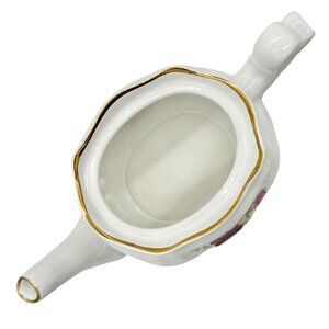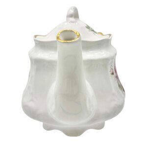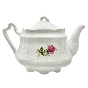 Arthur Wood England Teapot w Lid White w Pink Red Rose Floral Design Gold Trim