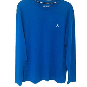 1577. Artic Cool. Hydrofreeze. Retail Price S50.00. Good condition - minimal wear - free of rips, tears, holes, pet/smoke odors. Crew neck. Long sleeves. Royal Blue. Four-way stretch. Moisture wicking. UPF50+. Antimicrobial. Cooling. Performance wear. Size Medium. Shoulder 19. Chest 42. Length 27.25. NOTE: available in several colors/styles. Experienced seller.