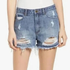Articles of Society Distressed Jean Shorts Size 28 Blue Raw Hem High Rise