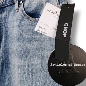 A fresh take on everyday denim, these Articles of Society high-rise crops blend structure with comfort. The lightly distressed knees and relaxed straight-leg shape make them perfect for casual weekend outfits, travel days, or modern streetwear looks. Easy to style with tees, sweaters, or oversized jackets.