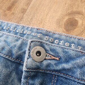 Design details: 5-pocket styling; zip fly with branded button; leather Articles of Society patch at back waist; subtle embroidered logo detail at back pocket; raw cut hems for a cropped look