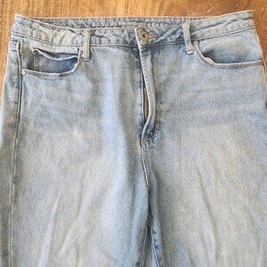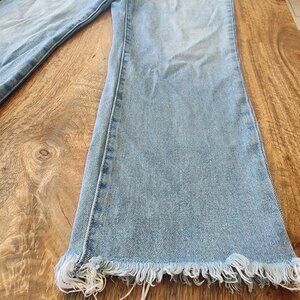 What it is: Womens jeans in a light blue wash with raw/frayed hems
