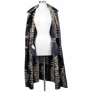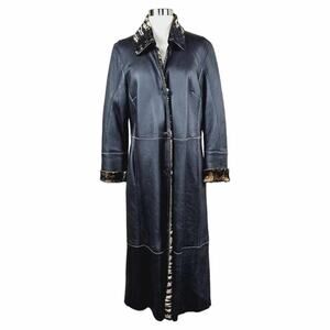 Artico Black Leather Long Trench Coat Animal Print Shearling $5,495 Size 42