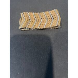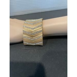 Articulated Chevron Gold Tone Rhinestones Stretch Cuff Bracelet