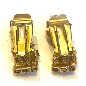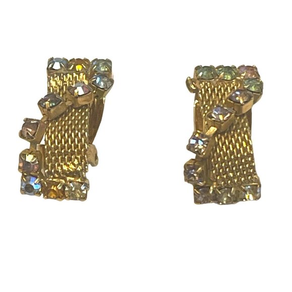 These earrings are incredibly unique and have a timeless design that will match almost anything! There are multiple colorful rhinestones carefully prong set that rest upon the golden interwoven chain! The chain and the stones have a really interesting pattern, and both sit stationary in some areas and move in others. While I can’t find any identification whatsoever, these are clearly old and because of the quality and color of the gold, I believe they may be gold filled, but I don’t know for sure, and don’t want to sell them as such.