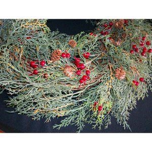 Artificial 18" Pine Christmas Wreath Holly Berries Pine Cones Holiday