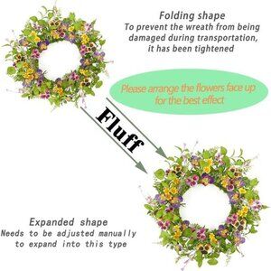 🧿Durable Material --The Spring Summer wreath is embellished with colorful Pansy Flower,yellow daisy,Rose Leaf,Eucalyptus Leaves,Green Fern branch.which is suitable for Spring and Summer.