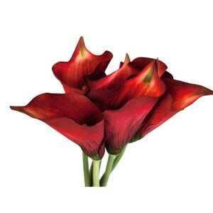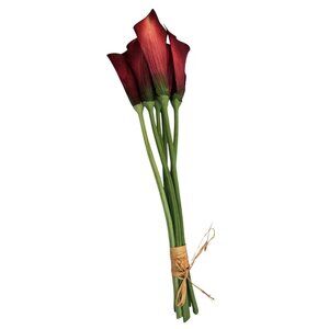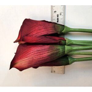 Artificial Burgundy Red Calla Lily Stems Green Wrapped Bundle of 6 Faux Flowers