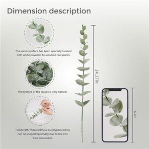 🧿[Versatile Use] These artificial eucalyptus stems can be shaped optionally due to the iron wire embedded. Combine the artificial eucalyptus stems with different kinds of flowers to make bouquets or use several eucalyptus stems with a mini vase to table decor at will. You can also use them to make wall hanging decor, door wreaths and so much more.