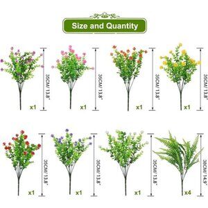 🧿【UV Resistant and Never Fade】Fake faux greenery plants are UV resistant and never fade, can be put outside, backyard, farmhouse, garden, balcony, window sill or indoor veranda. Perfect for home, weddings, hotels, terrace, office, guesthouses, parties or other indoor & outdoor place decoration, create an illusion of enlarged space.