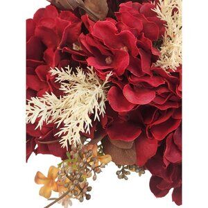 Artificial Fall Floral Bouquet Burgundy Hydrangeas & Orange Sunflowers | Rustic