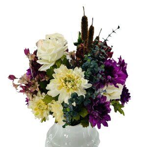 Artificial Flower Purple Pink Multi Bouquet Roses Mums Hydran Cattail Clematis
