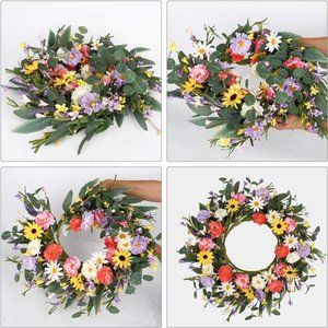 Artificial Flower Wreath,20” Purple Yellow White Pink Floral Spring Summer