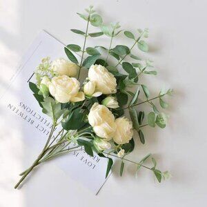 Artificial Flowers with Metal Vase, Champagne Peonies, Eucalyptus