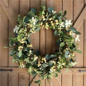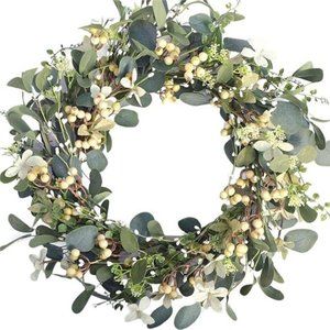 Artificial GreenLeaf Eucalyptus Wreath,Berry Wreath for Spring,Summer,Front Door
