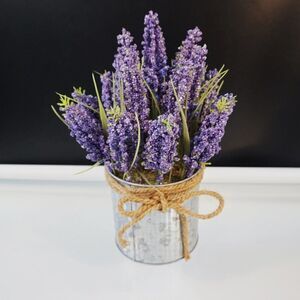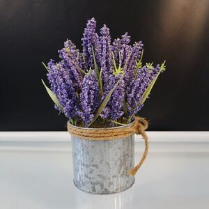 Artificial Lavender Flowers in Metal Tin Arrangment