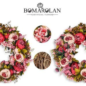 🧿HANDMADE - These beautiful decorative wreaths are handmade and each flowers is handmade with care, accented with brown durable twigs vine that cover the base of the floral wreath.This artificial door wreath will decorate your home in romantic atmosphere. It is also best gift for your lovers on Christmas, Valentine's day, Thanksgiving, Spring, ect. Very well received housewarming gift, birthday gift, christmas gift or sympathy wreath.