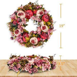 🧿SUITABLE SIZE - An artificial peony has a total diameter of 19 inches and 10 peony flower head, 3.5 inches in diameter.Beautiful Spring and Summer Wreath offers a realistic appearance, Filling with beautiful and lush flowers; The elegant look of this flower wreath helps to add a touch of color and the feel of nature to your home.
