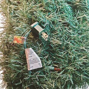 Appears to be original factory wrap wrap: tags, plug and cord intact appear unused; minor needle shedding with handling. approx measurement obtained from count of 11- 19" strands on each side of wrap