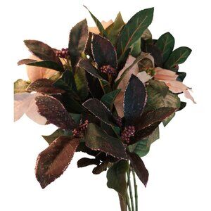 Artificial Pink Poinsettia Bouquet With Glitter Accents & Green Leaves