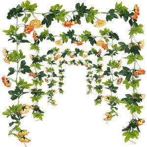 Artificial Rose Vines Flowers Garland Hanging Silk Rose Vine Wedding, Sunset Red