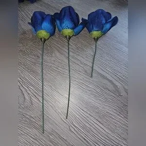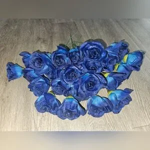 Perfect for decoration or gifting. Navy blue/lighter blue ombre-looking artificial roses with separate silver accents bought originally at Hobby Lobby for my wedding decor. We made our own bouquets with these. Stems are removable if needed. Quantities are as follows: