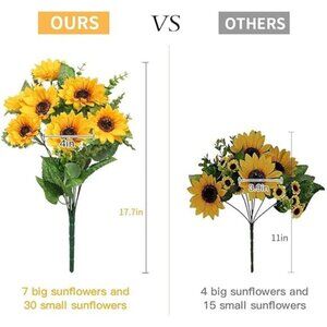 🧿Product specification: The effect picture shown on the main page is 2 bunches of flowers, 7 flowers per bunch.2 bunches per pack. 14 big sunflowers 60 small sunflowers and 72 leaves in all. The total length is 17.7 inches, the diameter of the big sunflower is 4 inches, and the weight per bunch is 0.24 lb