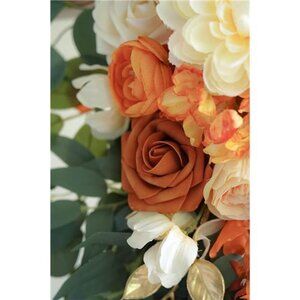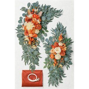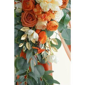 🧿🥂Burnt Orange Wedding Arch Flowers Kit: The wedding decorations for ceremony are plentiful which come with 1 X Left Corner Flowers of 100 x 42cm/ 39 x 16.5 inch + 1 X Right Corner Flowers of 76 x 38cm/ 30 x 15 inch + 1 X White Color Chiffon Fabric Drape of 800 x 73cm/26.3 x 2.4 ft + 6 X White Zip Straps of 7.6mmx45mm/0.29 x 17.7 inch(NOTE: Not Include Wood Stand)