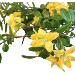 This set of two artificial yellow flowering branches is crafted to bring a lifelike natural element to your decorations. Each stem features vivid yellow blooms complemented by rich green leaves for a realistic and vibrant aesthetic. Constructed from durable and high-quality materials, these faux branches are perfect for a variety of applications, such as table centerpieces, event decorations, or pairing with floral arrangements. The flexible stems allow for easy shaping and arrangement to match your style preferences, while their new condition ensures an impeccable presentation. These artificial branches combine beauty and function, offering a timeless floral display that requires no maintenance. Stems will be bent for shipping purposes.