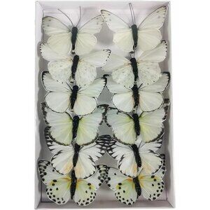 Artificial butterfly decorations set of 12 feather clip ornaments for crafts