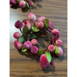 Artificial strawberry fruit 2” napkin rings. Set of eight. Good pre-owned condition.