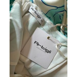 Artigli White Blue Floral Satiny Maxi Dress fits Like Size 2 NWT