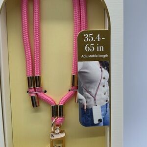 Artikl Universal Crossbody Phone Strap – Adjustable Length 35.4”–65” – Pink with Gold Hardware NWT