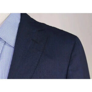 Artini Handmade in Italy Navy Blue Plaid Unlined 2-Btn Wool Blazer Jacket 40R