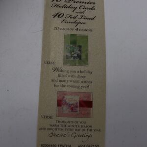These vintage Artis Christmas cards are new old stock and include 40 premium cards with 4 unique designs and foil-lined envelopes. Soft, tones of blue, green, and florals create a subtle, refined holiday look rather than bold, traditional colors. Each design features a heartwarming verse, including messages like wishing a holiday filled with cheer, thoughts of you brightening every day, and other festive greetings perfect for sharing warmth and joy. Glittered ornaments float against sparkling, ethereal backgrounds framed by shimmering borders, offering a magical and festive way to send seasonal wishes to friends and family.