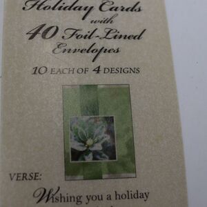 Style: Christmas cards, holiday stationery, foil-lined envelopes, blue and green floral designs