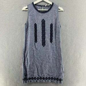 Artisan 100% Linen Embroidered Shift Dress Womens 4 Boho Hippie Beach Wedding