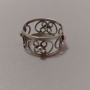 Artisan 925 Sterling Silver Flower Cutout Design Wide Band Ring Size 7