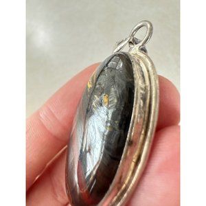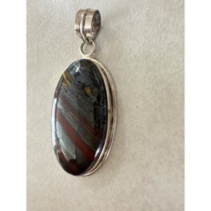 Artisan 925 sterling silver polished iron tiger's eye jumbo statement pendant