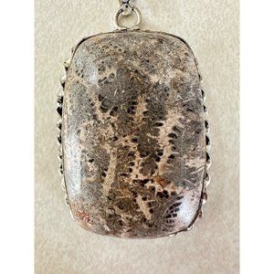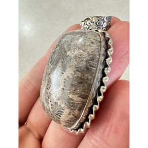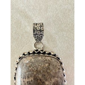 Artisan 925 sterling silver polished tan gray jasper jumbo statement pendant