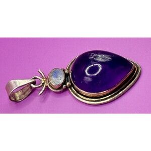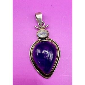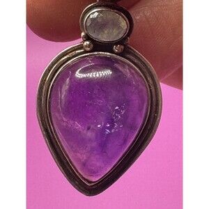 Artisan Amethyst Moonstone Sterling Pendant Pear Shaped Cabachon Faceted Stamped